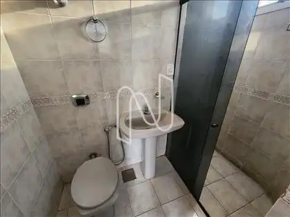 - Banho social, piso e parede em cerâmica, box blindex;