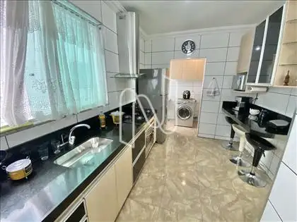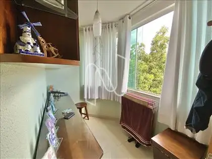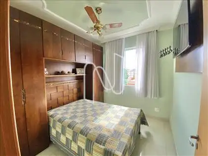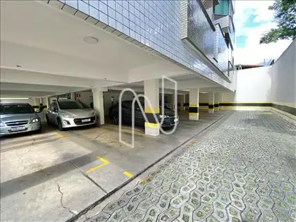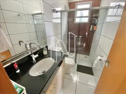 O imóvel é composto por 3 quartos, sendo 1 suíte, banheiro social, sala, cozinha, área de serviço e varanda. Possui 2 vagas de garagem demarcadas e cobertas.