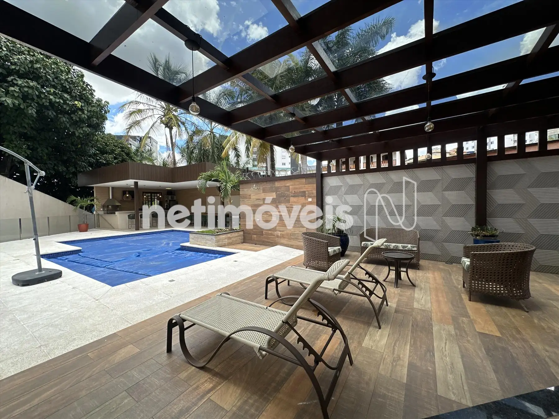 - Espaço gourmet com churrasqueira bancadas em granito, pergolado e piscina com dois sistemas de aquecimento;