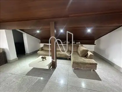 - Sala de estar com piso em mármore e pé direto com 3m², revestido em madeira;