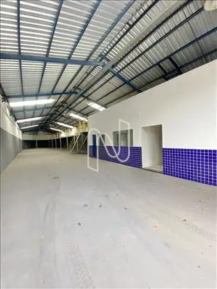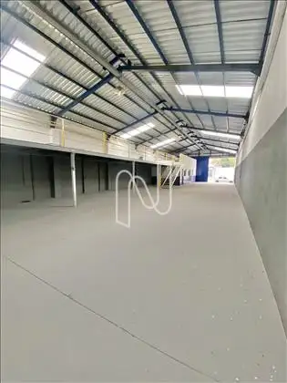 DESCRITIVO: Galpão estrutura metálica com telhas de zinco. Com aproximadamente 500,00 m² . Sendo 120,00 m² de mezanino em estrutura em aço com piso de madeira. 02 Sala, 01 Cozinha, 02 Banheiros.